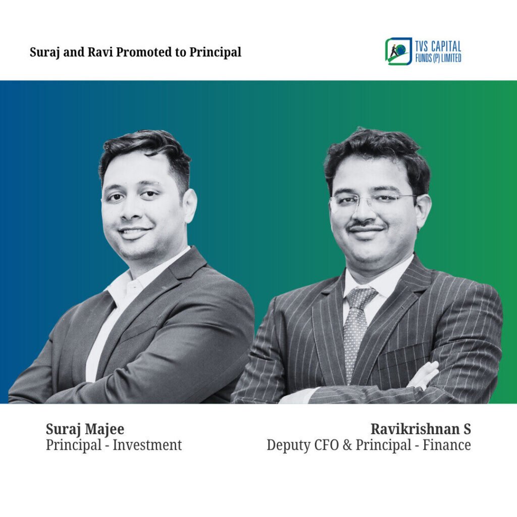 Chennai, October 7, 2025 – TVS Capital Funds is pleased to announce the elevation of Suraj Majee and Ravi Krishnan to the role of Principal, recognising their outstanding contributions and leadership within the firm.